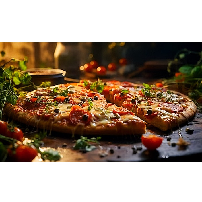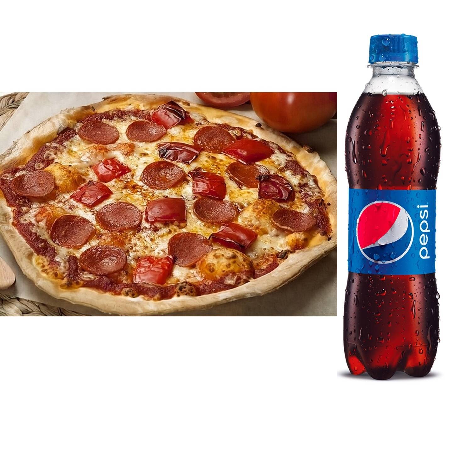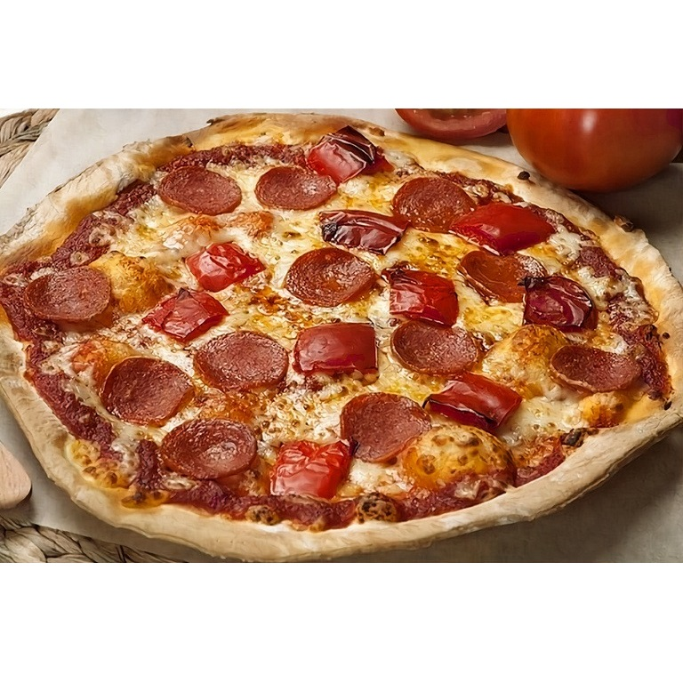 Pizza personal (20x20 cm) Salsa napolitana, queso mozzarella, pepperoni, aceituna, champiñón.