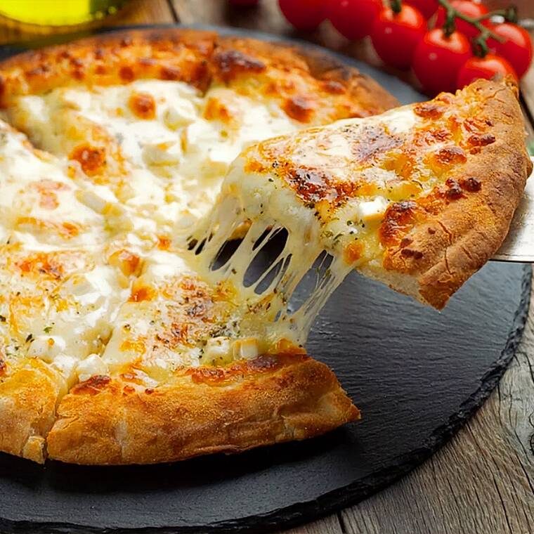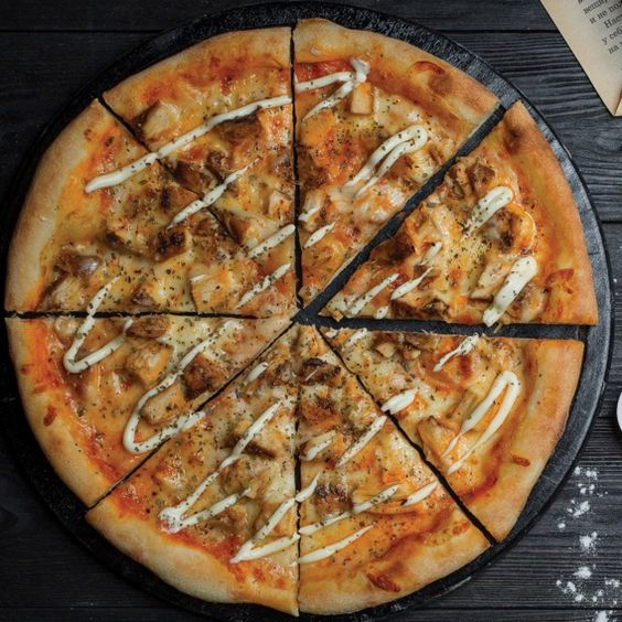 Pizza personal (20x20 cm) Crema de leche, queso mozzarella , pollo, cebolla y tocineta.