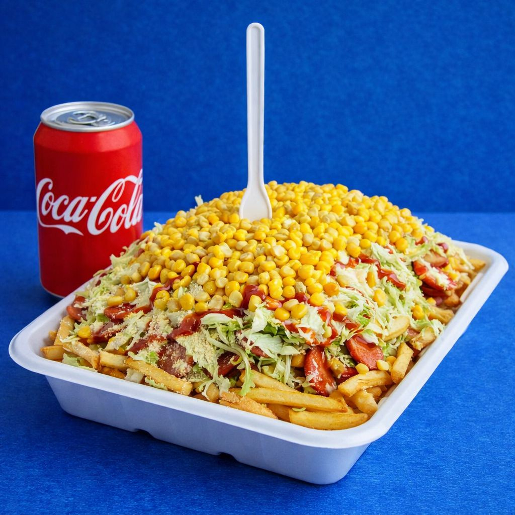 DELICIOSA SALCHIPAPA AL MEJOR ESTILO DE LA COSTA CARIBE, INCLUYE: PAPA, SALCHICHA AMERICANA, LECHUGA, QUESO, SALSAS,PAPA CHONGO,ESTA SALCHIPAPA ES TAMAÑO C1