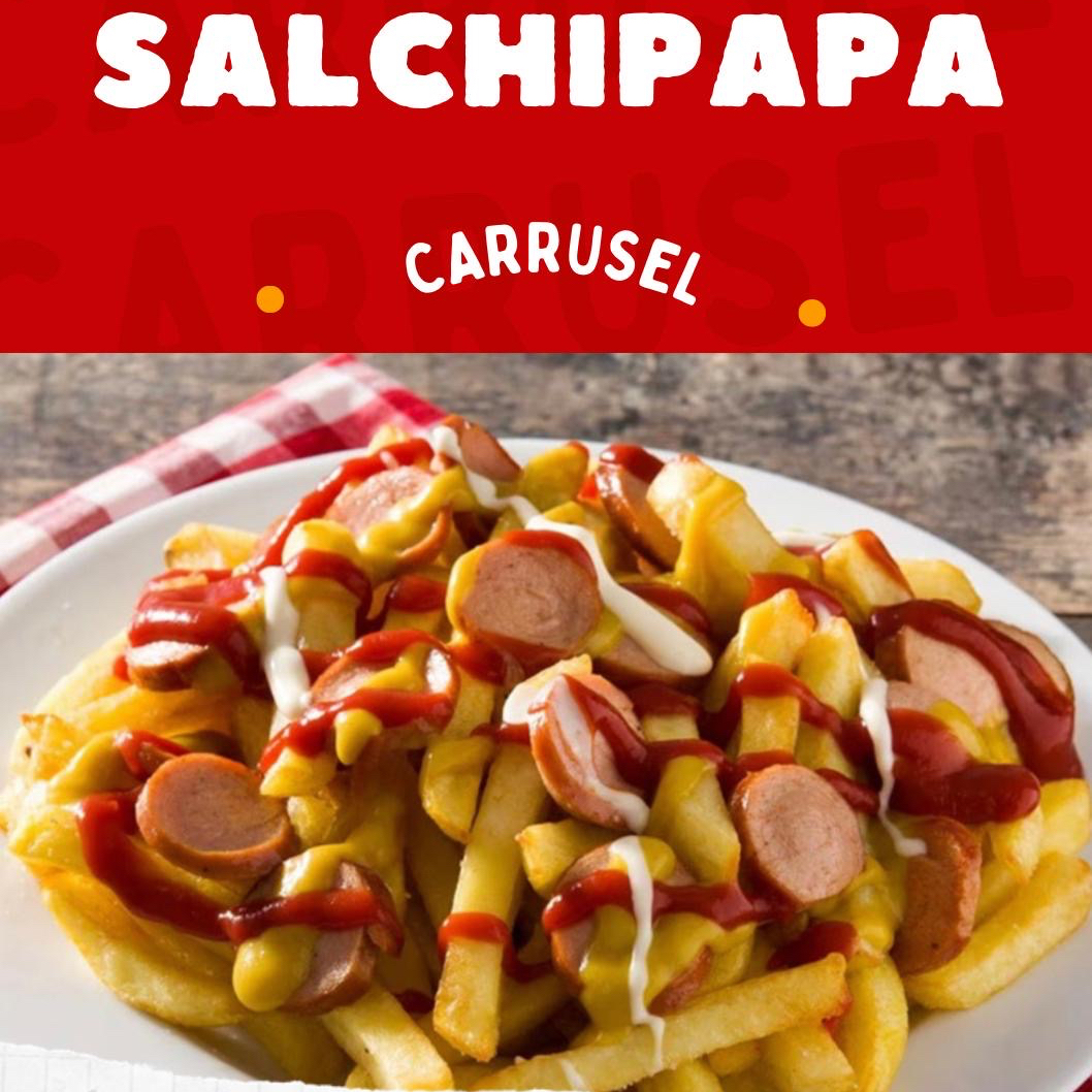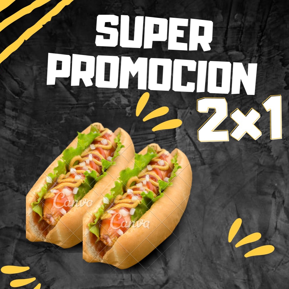 Salchicha americana, jamón, papa fosforito, cebolla, queso y salsas