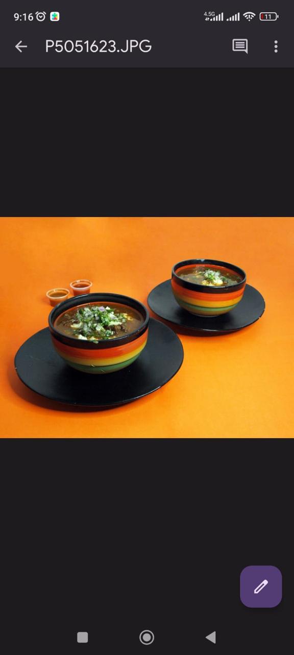 Res desmechada adobada en salsa de chile dulce y diferentes especies, tortilla de harina, costra de queso, frijol refrito, lechuga, pico de gallo y crema agría, acompañado de guacamole y totopos. Platillo personal.