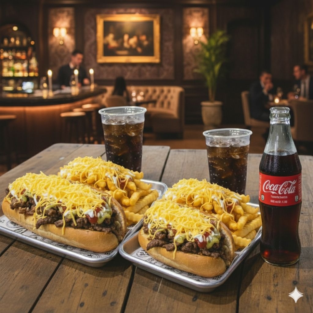 A La Francesa,Pollo Desmechado,Carne Desmechada,Queso Amarillo,Salsa Cheddar y De La Casa y gaseosa