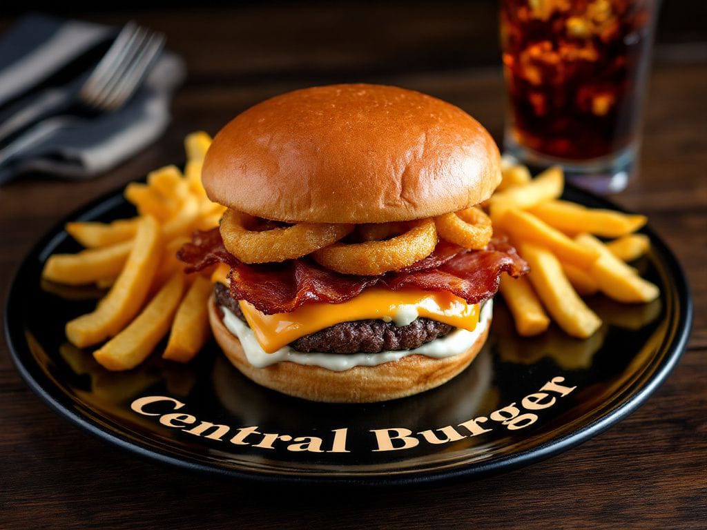 Una explosión de texturas en cada bocado. 100g de carne de res artesanal cubierta con queso cheddar americano, tocineta ahumada y nuestros dorados aros de cebolla para un toque extra crujiente. Todo equilibrado con vegetales frescos (lechuga, tomate, cebolla) y salsas de la casa, dentro de un suave pan brioche. El combo incluye: Papas a la francesa y bebida a elección.