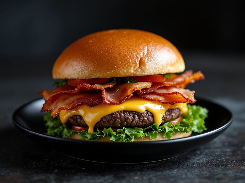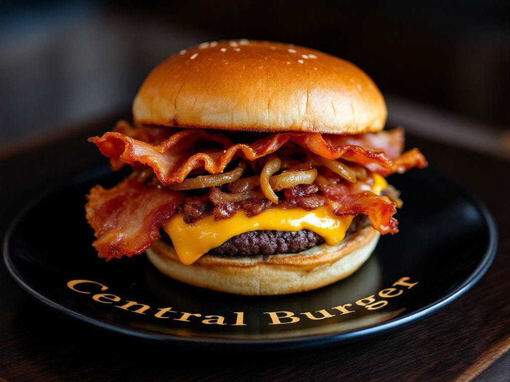 Puro sabor, sin interrupciones. Disfruta de 100g de jugosa carne de res artesanal servida en un esponjoso pan brioche. La coronamos con queso cheddar americano fundido y tiras de tocineta ahumada crujiente, todo realzado con nuestras salsas especiales de la casa. (Sin vegetales, para maximizar el sabor de la carne y el tocino).