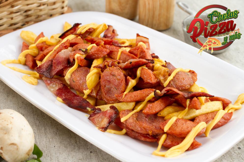 PAPA FRANCESA-SALCHICHA-CHORIZO-TOCINETA-CHEDDAR