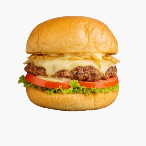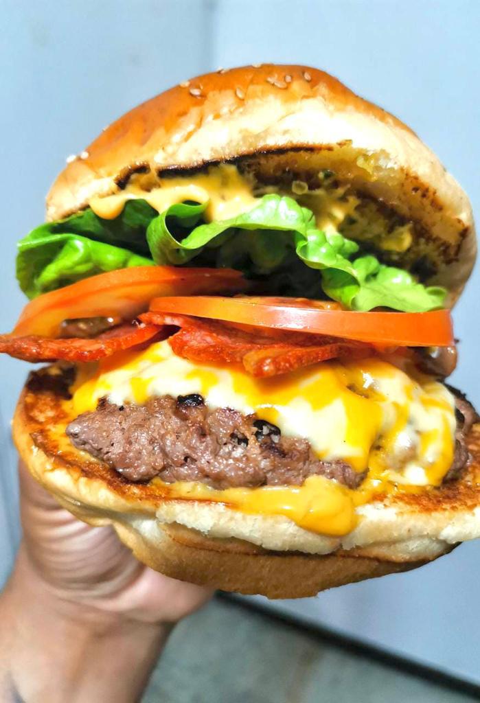 Pan brioche - Blend de carne 150 g - queso americano-papa fosforito - vegetales con salsa de la casa.