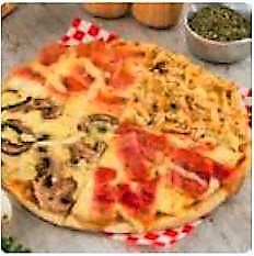 Salsa de la casa-pollo-jamón-tocineta-champiñones fresco y mozzarella,, 4 porciones