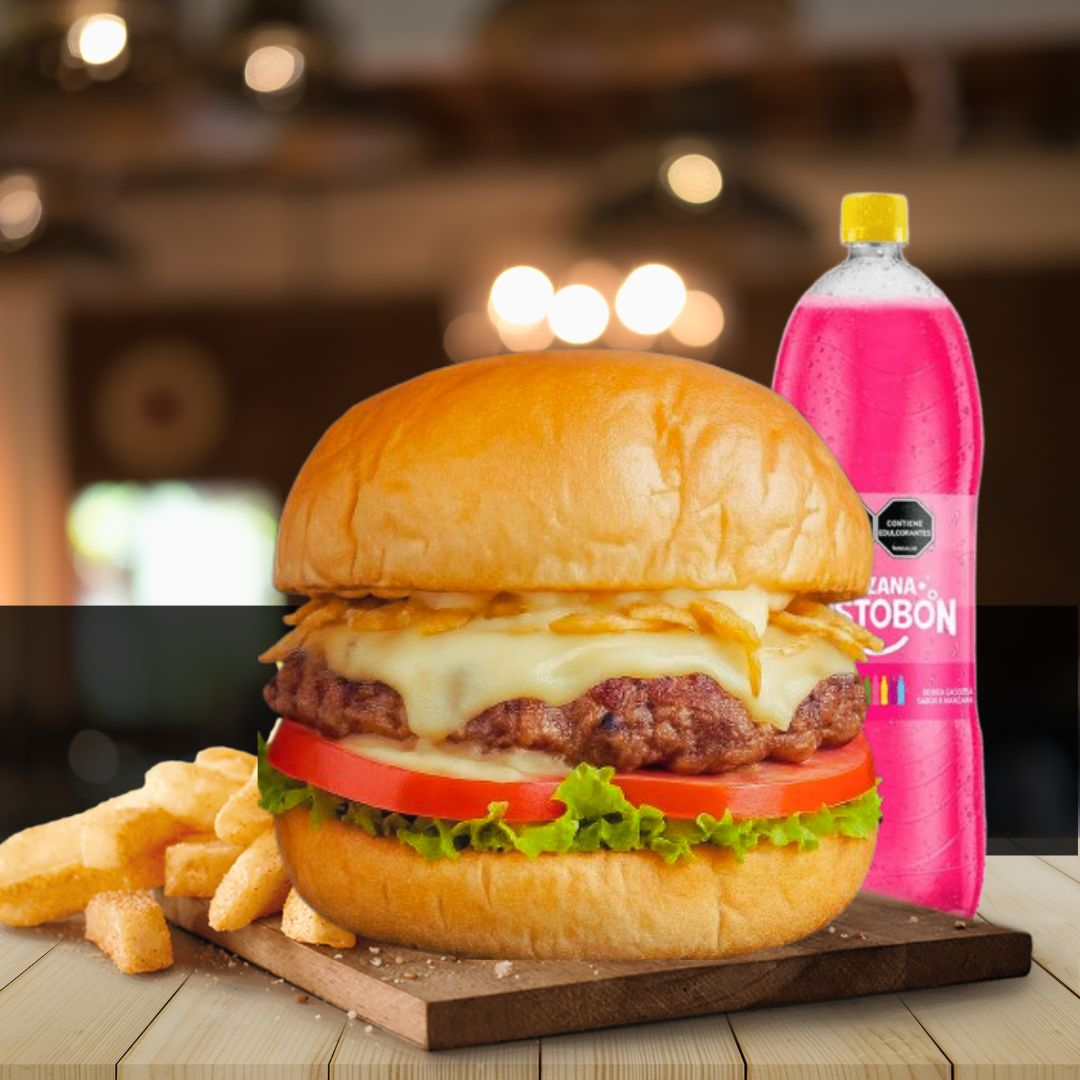2 Hamburguesas + 1 Gaseosa 250 Ml.