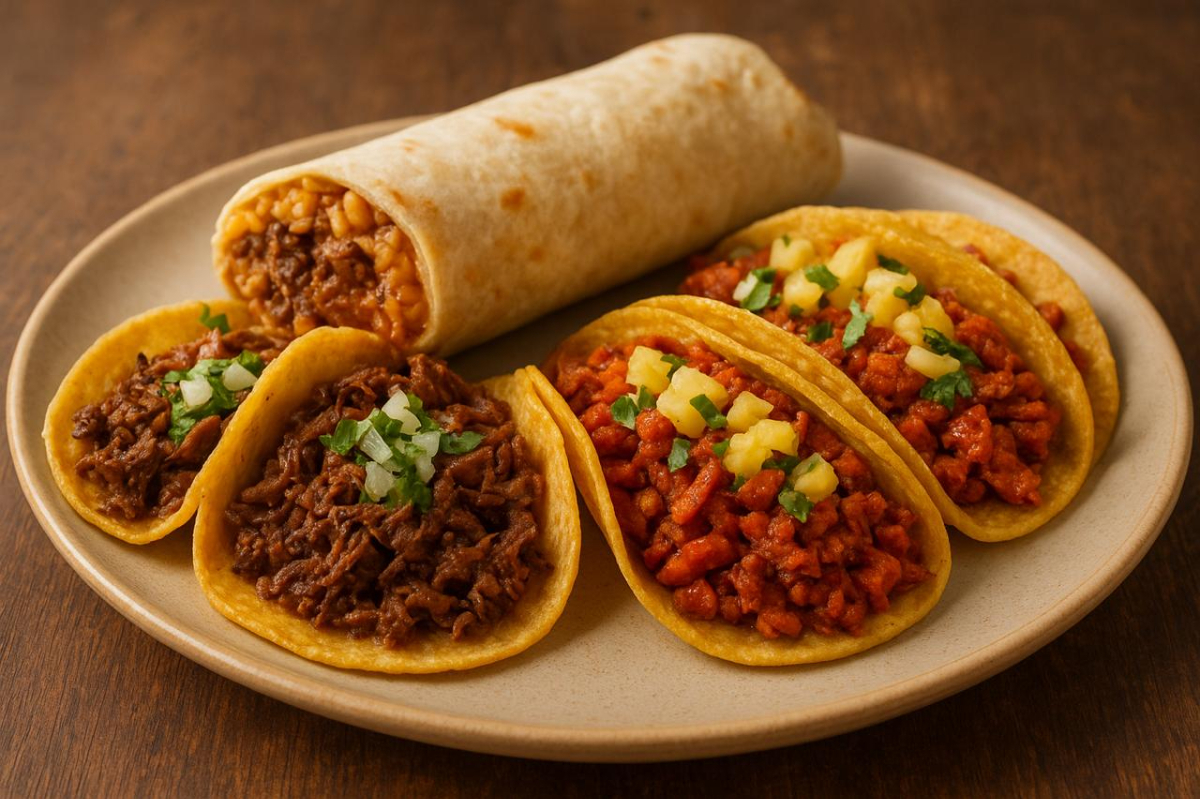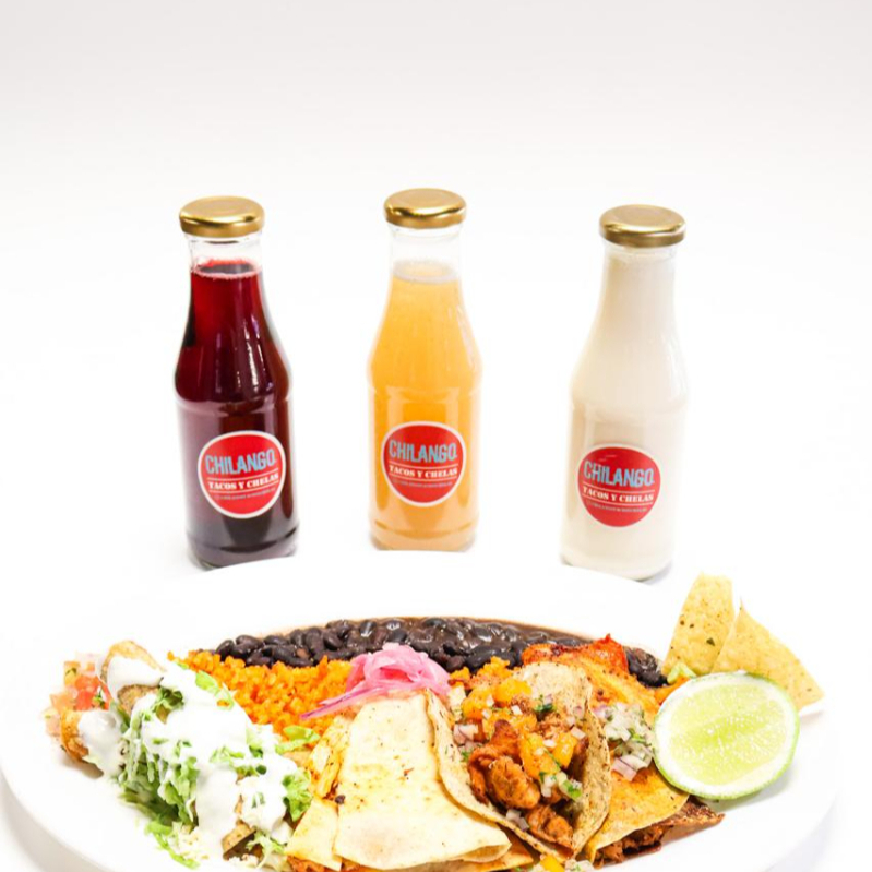 taco de cerdo pastor ,taco de birria de res,quesadilla de cochinita,flauta de pollo,guacamole,pico de gallo,totopos,arroz y frijoles estilo chilango incluye bebida (jamaica,tamarindo,horchata