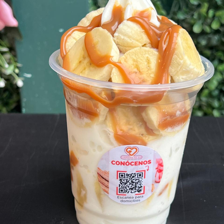 Helado artesanal, banano y arequipe (no incluye churros).