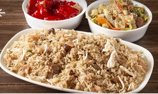 Arroz chino de 700g con chop suey, 3 unidades de cerdo agridulce.
