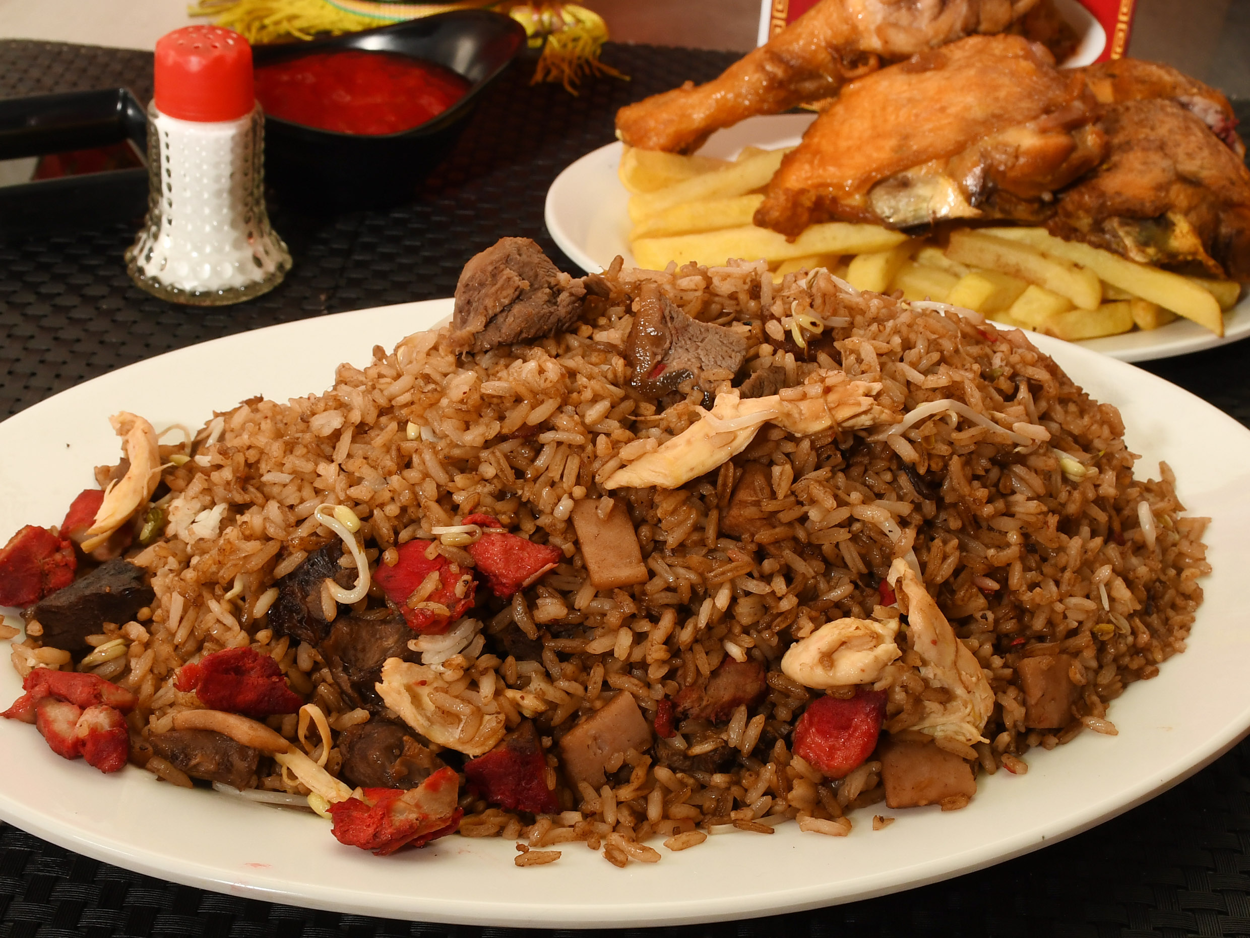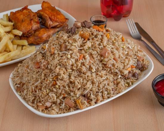 Arroz chino de 1200g con papa francesa, 1/2 pollo.