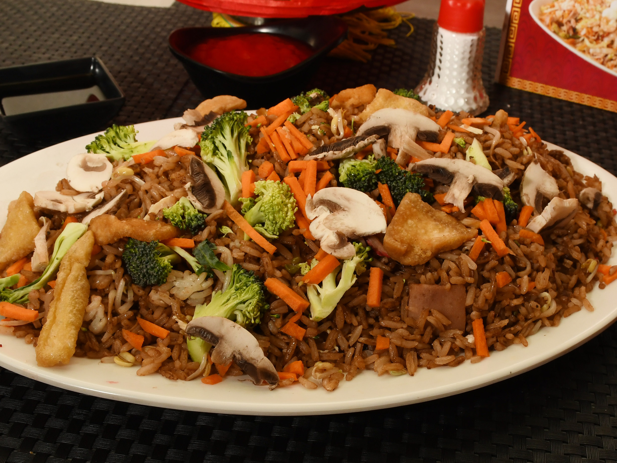 Arroz de 1500g con tofu, champiñón, zanahoria, brócoli.