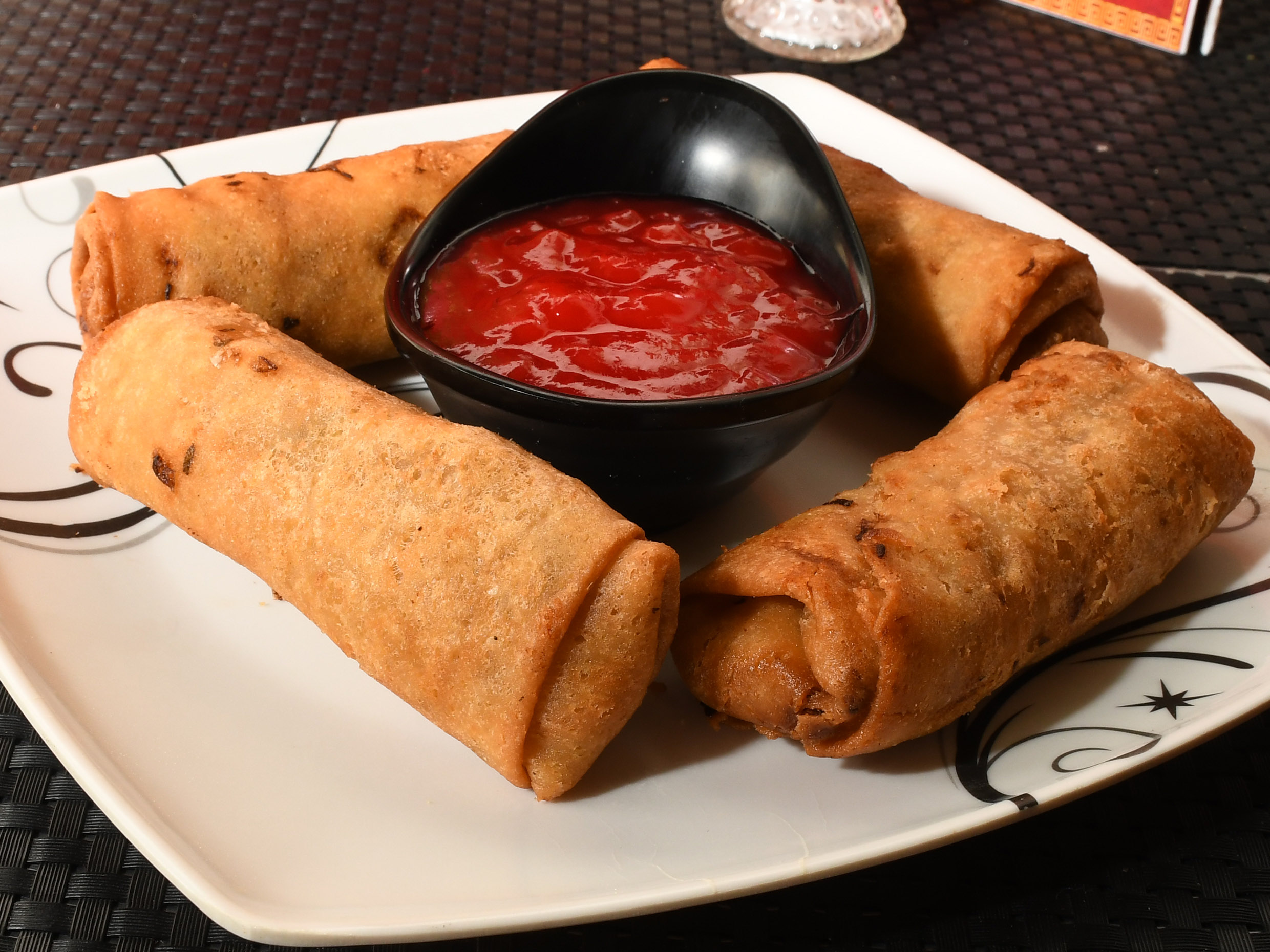 Rollitos 3 unidades, rellenos de vegetales con salsa agridulce.