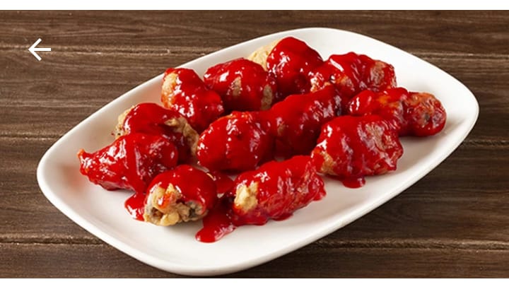 Pollo apanado por 8 unidades, bañadas en salsa agridulce.
