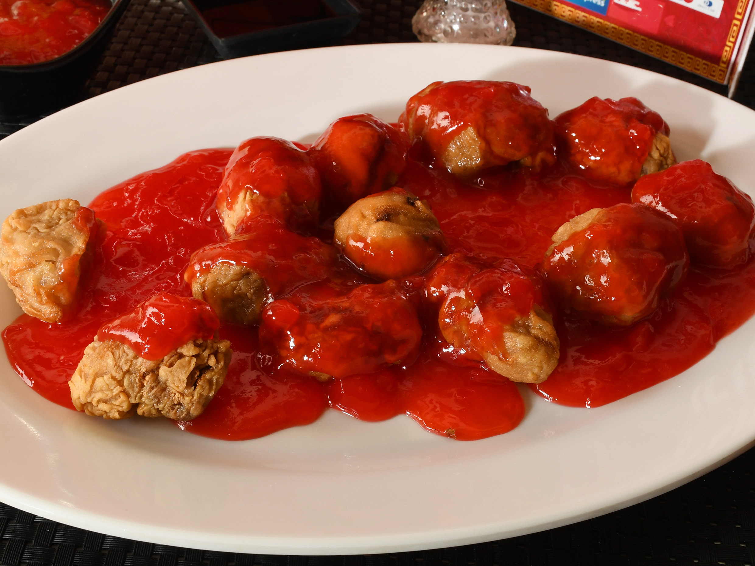 Cerdo apanado por 8 unidades, bañadas en salsa agridulce.
