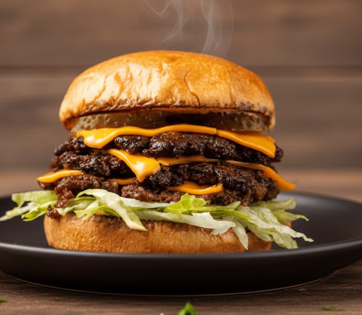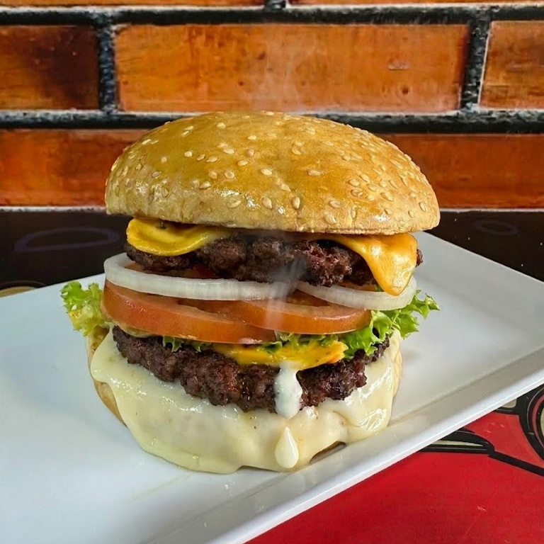 Pan tipo brioche, sellado en mantequilla con triple carne de res artesanal, cebolla, tomate y lechuga.