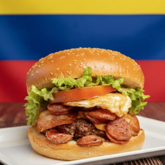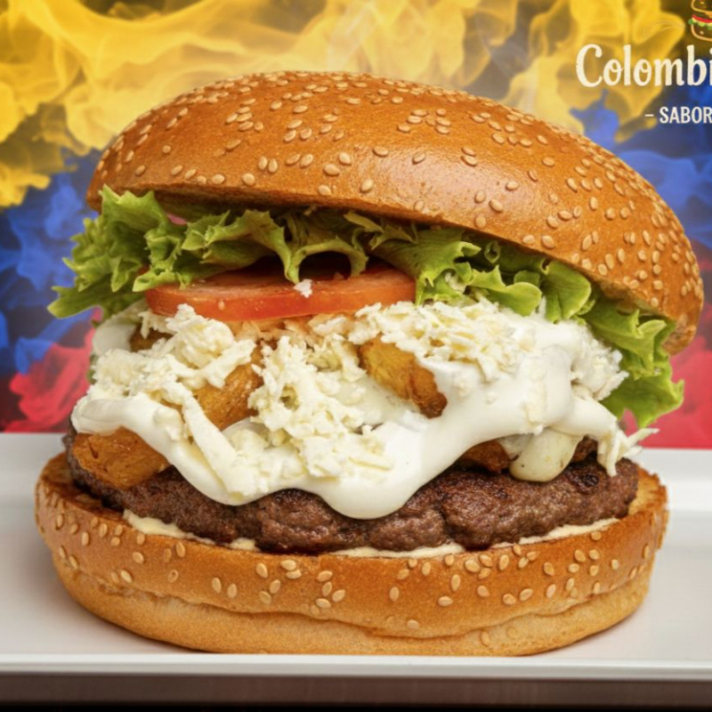 Pan brioche suave, carne 100% artesanal de res 🥩 (100g), huevo frito 🥚, tocineta crocante 🥓, vegetales frescos 🥬🍅🧅 y la mezcla perfecta de queso cheddar 🧀 + salsa tártara 🤤. ¡Una explosión de sabor bien paisa, hecha con todo el flow colombiano!. 🚀✨