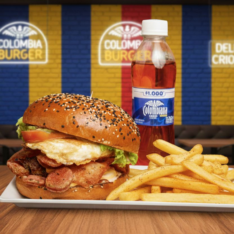 🔥 Antioqueña Legendaria 🔥 ¡La reina paisa de la calle! 🍔💥 100g de carne jugosa + plátano maduro crujiente + tocineta crocante + huevo frito + queso bien derretido + vegetales frescos, todo en pan brioche con ajonjolí y mantequilla. Rematada con nuestras salsas de la casa 🤤 Una bomba de sabor 100% paisa que se respeta. Gaseosa 250 ml*1 + Papa a La Francesa*1