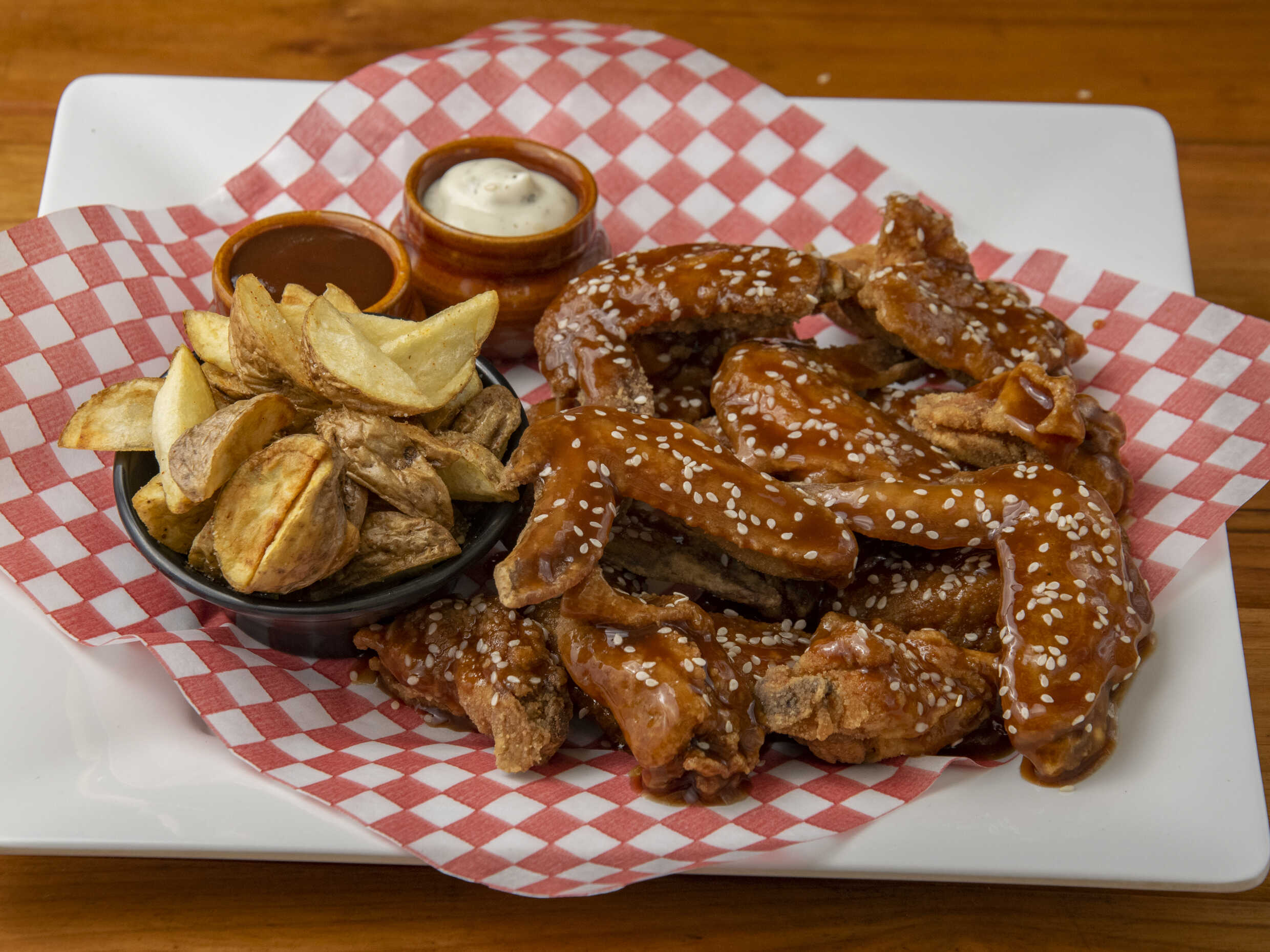 14 Deliciosas Piezas de alitas BBQ acompañadas de una Porción de Papa a la Francesa Artesanal de 150g.