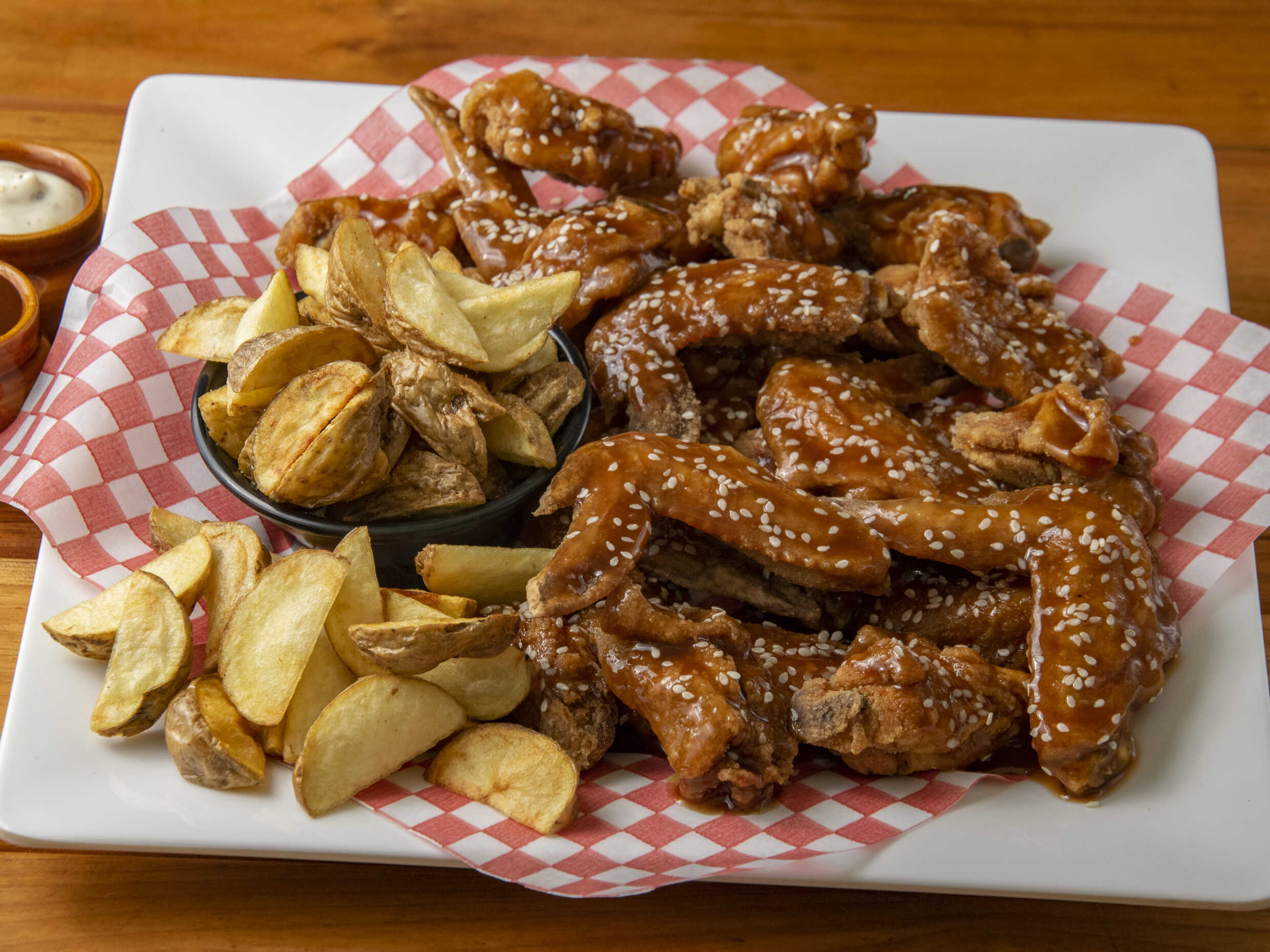 28 Piezas de AlitasBBQ + Papas