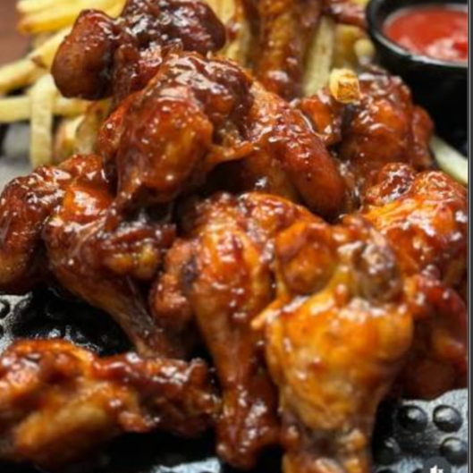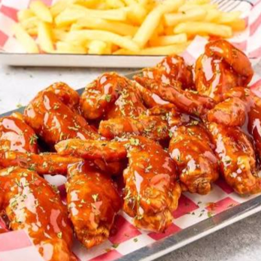 28 Deliciosas Piezas de Alitas BBQ acompañadas de 2 porciones de papa a la francesa artesanal de 150g.