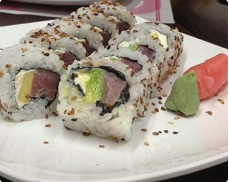10 Bocados. Atún fresco, aguacate y queso crema.