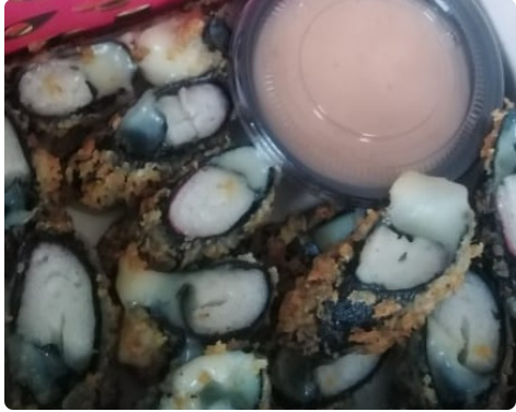 Palmito de cangrejo envuelto en nori con queso mozzarella al tempura.
