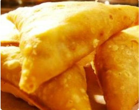 Empanaditas hindúes rellenas de carne de res condimentadas con curry.