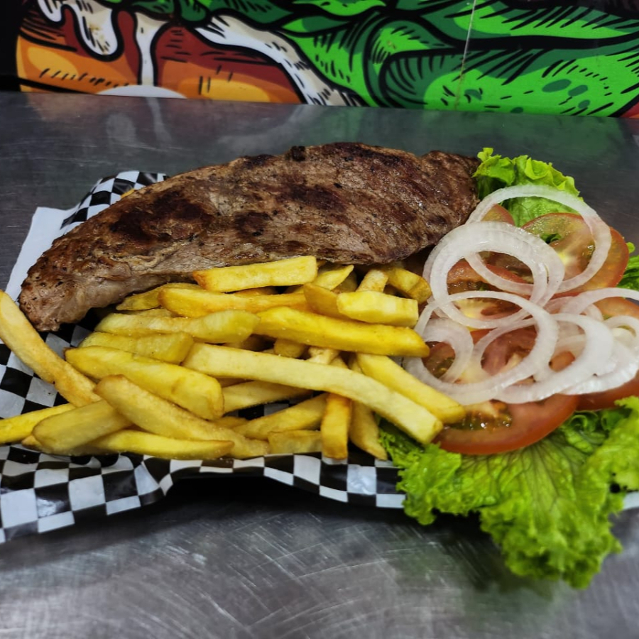 120gr de lomo de res, 150gr de papa francesa, ensalada fresca y salsas para aderezo