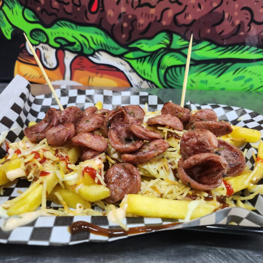 250gr de papa francesa, chorizo santarrosano, papa cabello de ángel y salsas de la casa