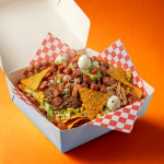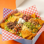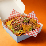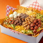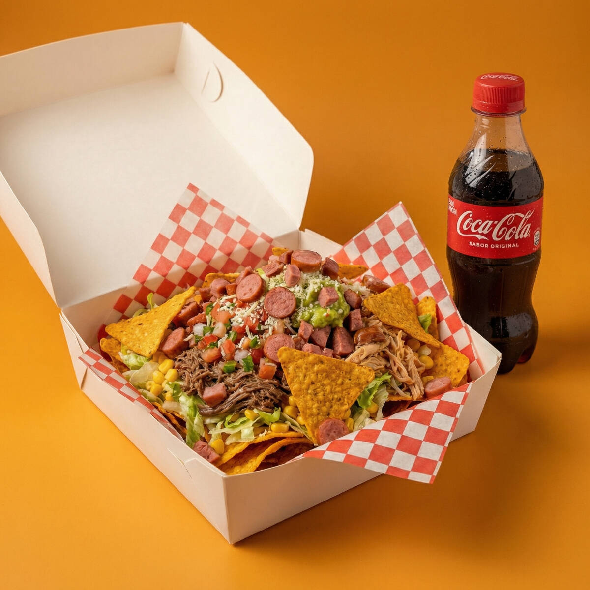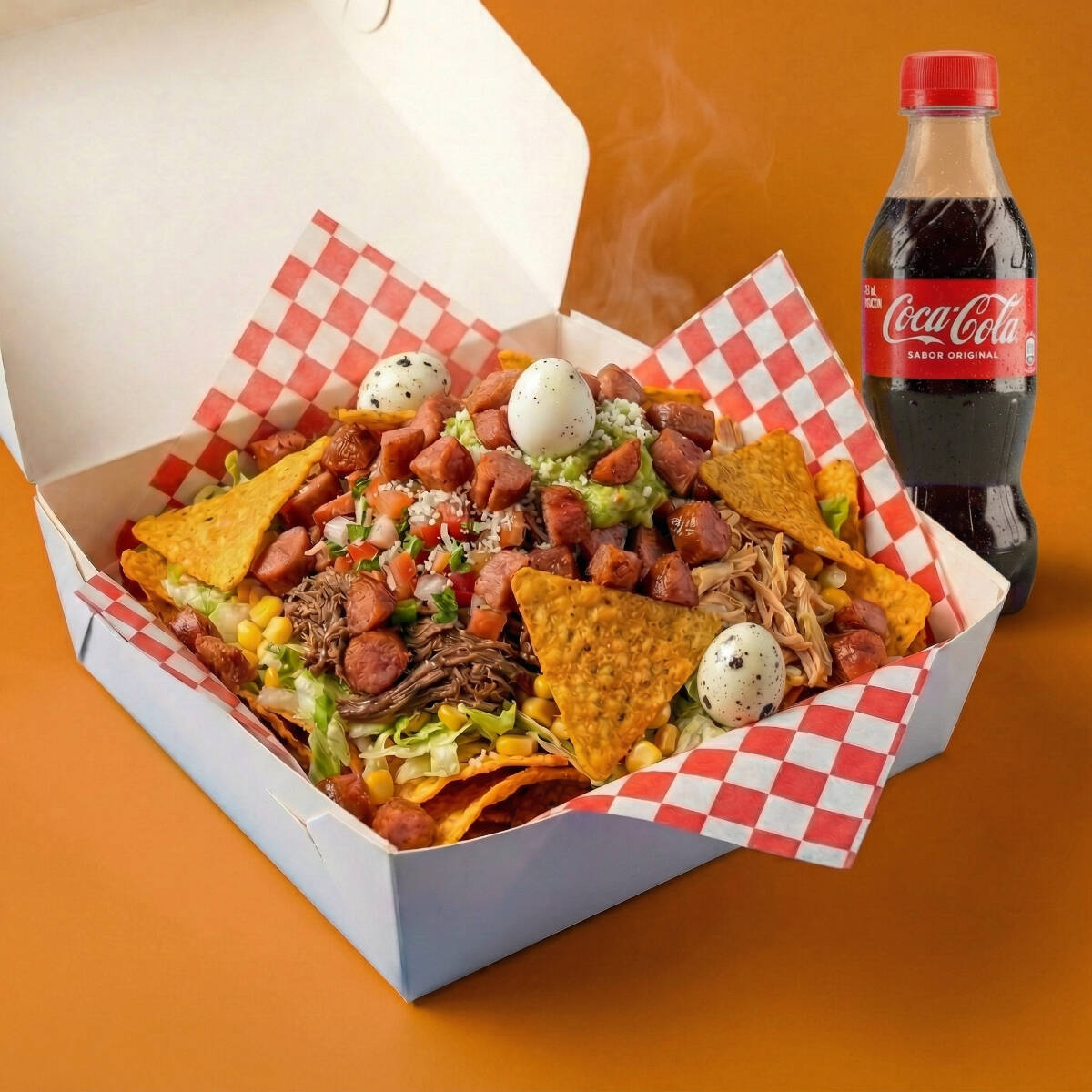 Nuestra bandeja más salvaje: todo en doble cantidad, 3 proteínas, lechuga, maíz, pico de gallo, guacamole, queso, papa ripio y toppings extra. Hecha para compartir… o para valientes.