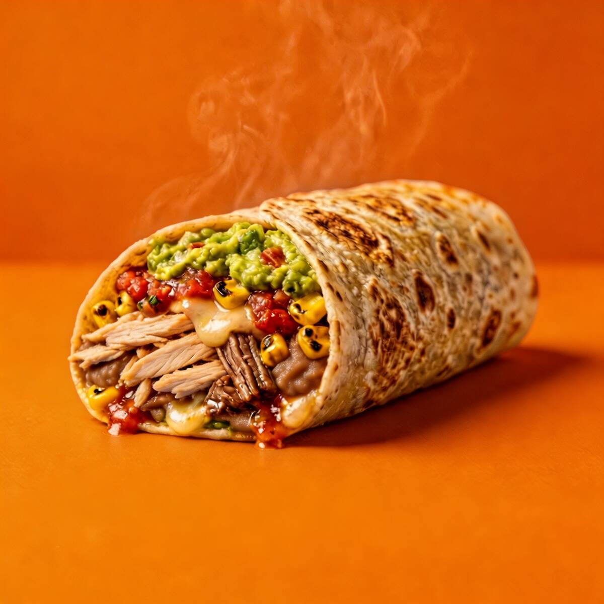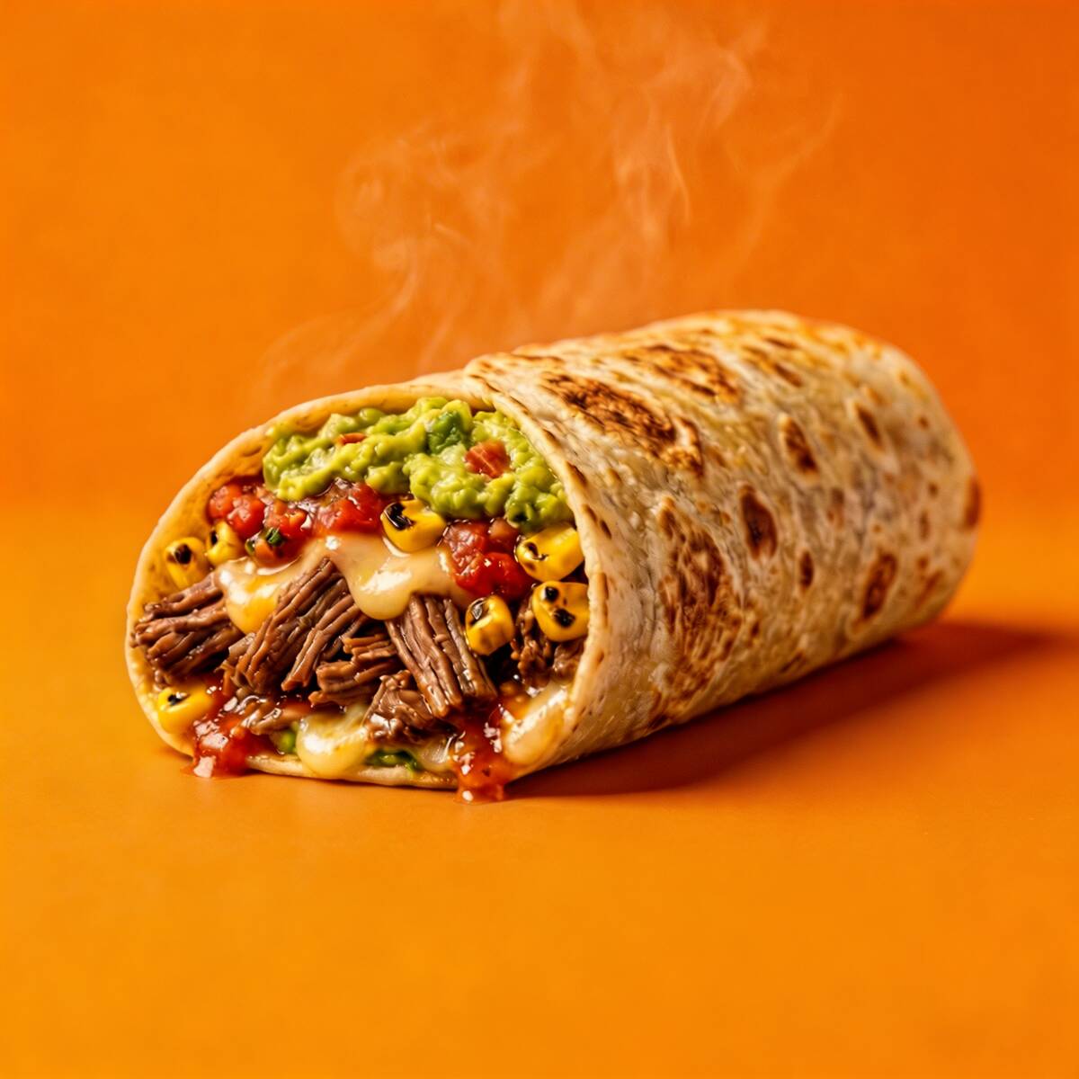 Un burrito bien cargado con 1 proteína jugosa, lechuga fresca, maíz dulce, doritos triturados, pico de gallo, frijol refrito, guacamole cremoso y queso derretido. Una mezcla perfecta de sabores y texturas en cada mordida.