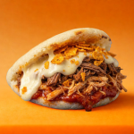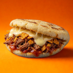 Arepa dorada rellena con queso derretido, 1 proteína a elección y doritos triturados. Crujiente por fuera, irresistible por dentro.