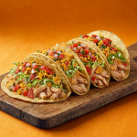 x4 Tacos con pollo jugoso, lechuga, maíz, doritos triturados, pico de gallo y queso. Ligero, fresco y lleno de sabor.