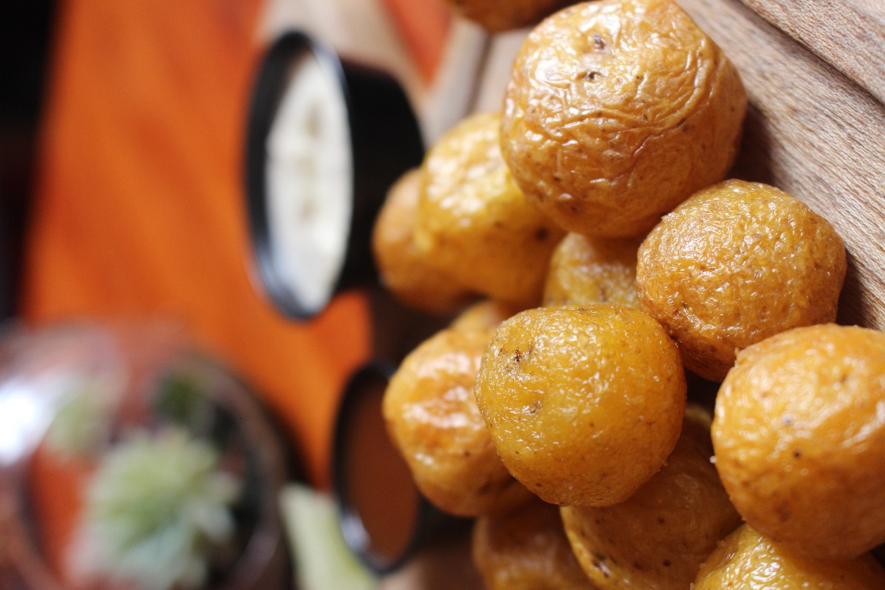 Pierna pernil deshuesada, acompañada de papa criolla, ensalada fresca y salsas de la casa