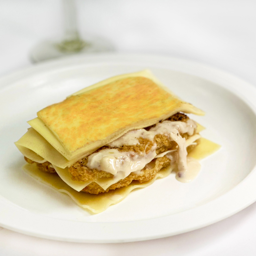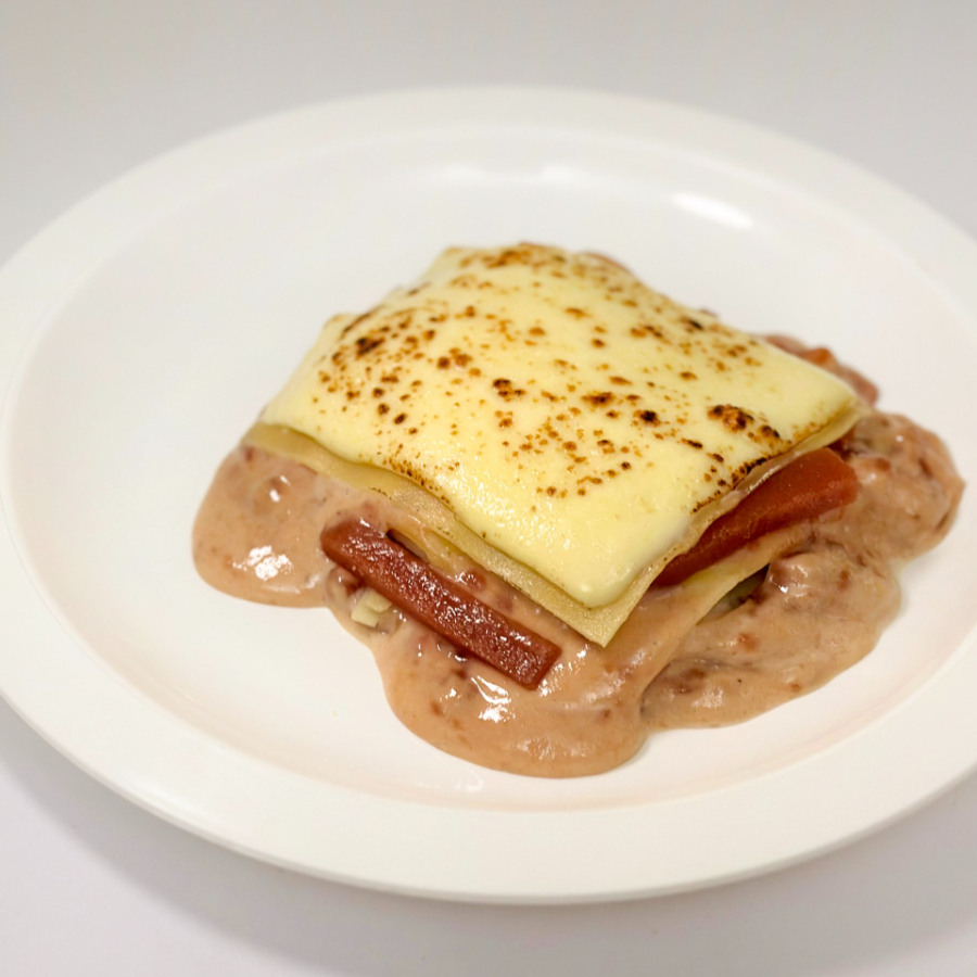 Una explosión dulce y salada que te lleva directo al paraíso con jamón , piña , salsa bechamel y mucho queso entre capas de pasta.