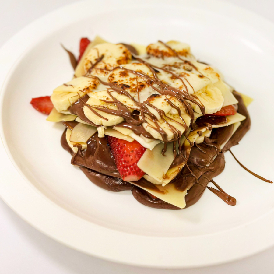 Una lasaña dulce de masa crepe, rellena de Nutella y frutas frescas. Suave, irresistible, perfecta para los que aman los placeres .