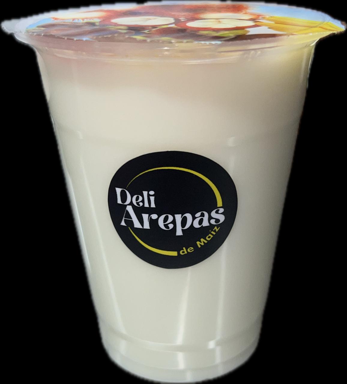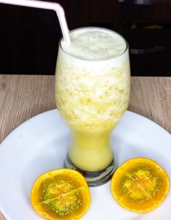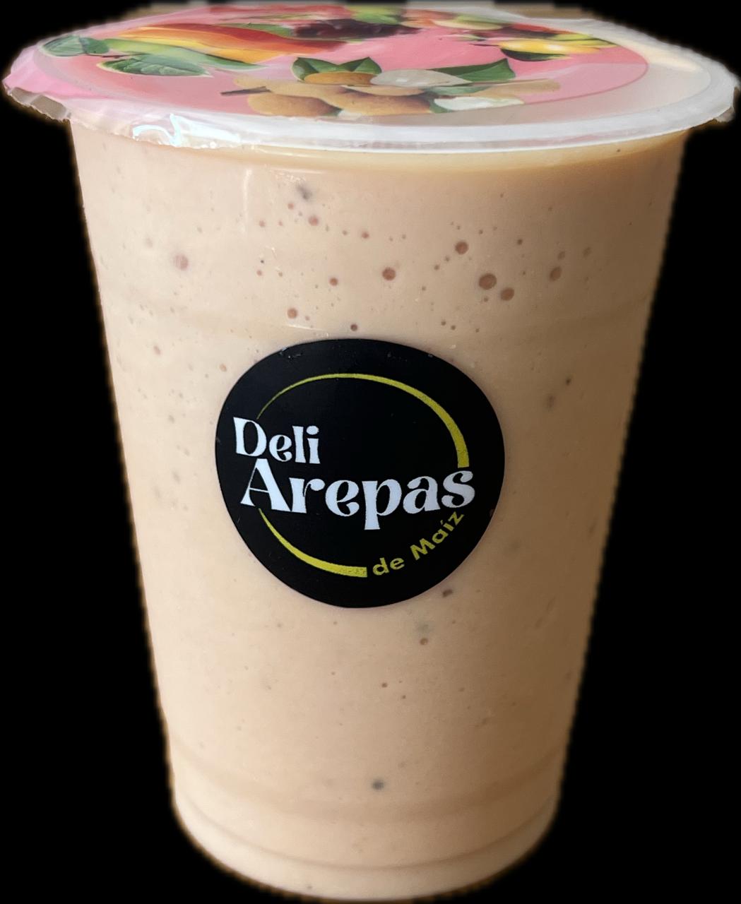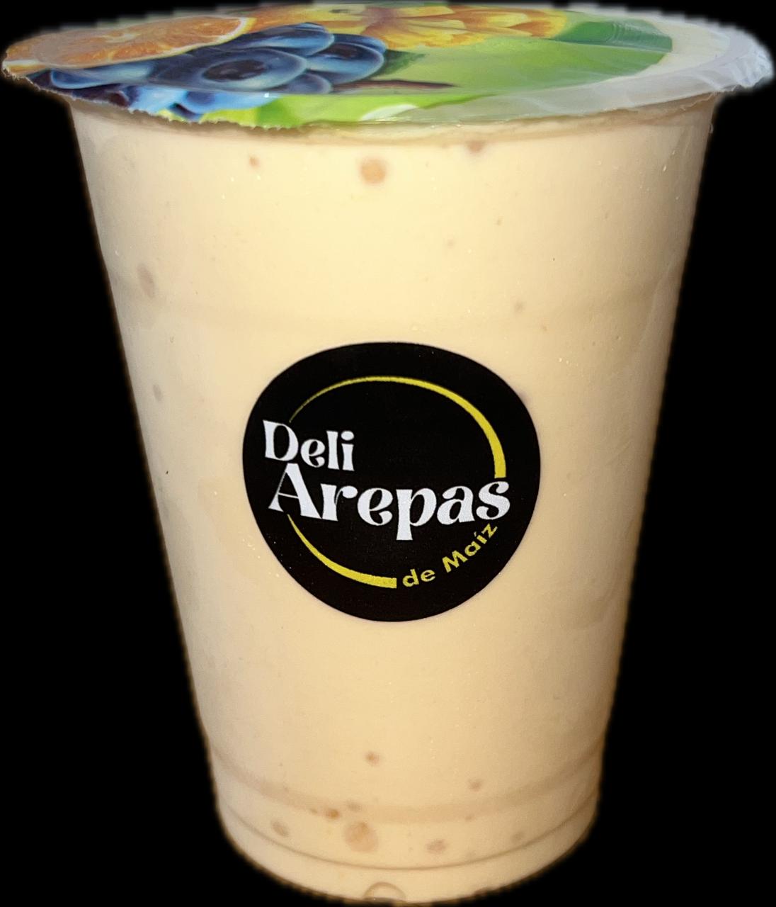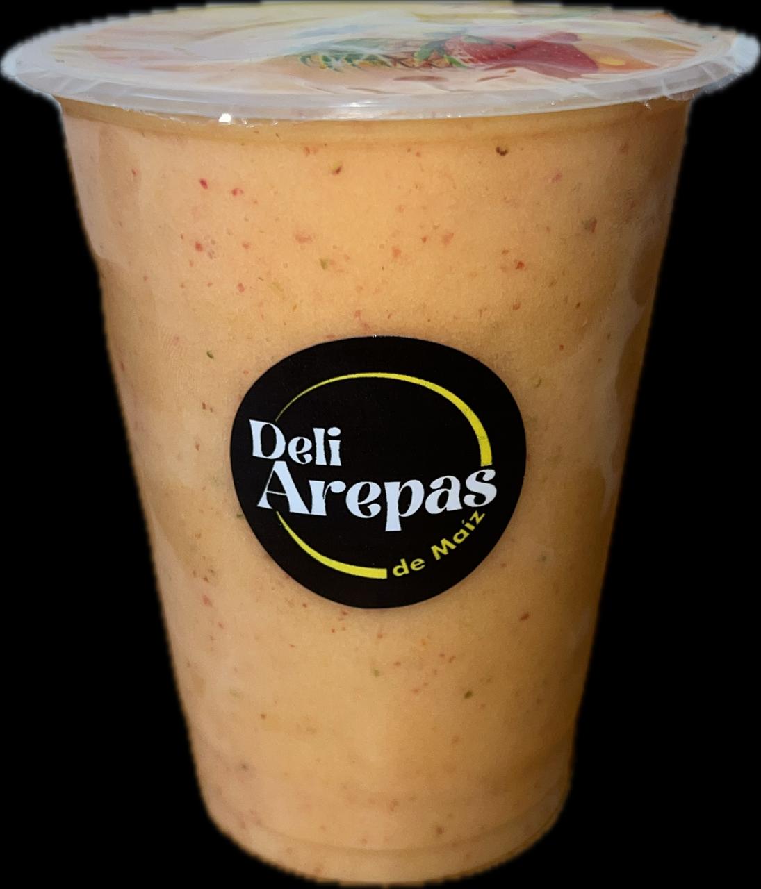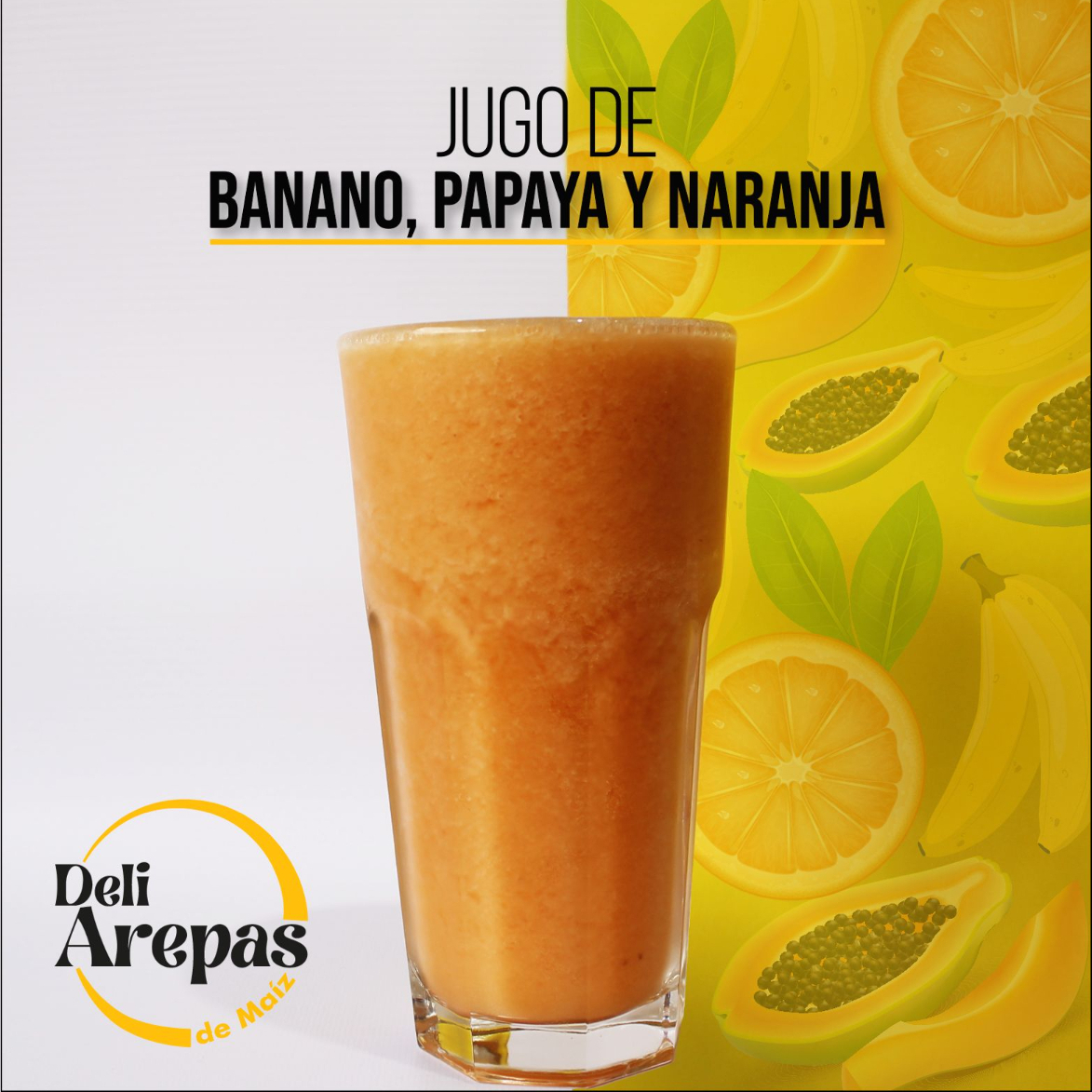 Jugo a base de pulpa de banano, papaya y naranja en agua.