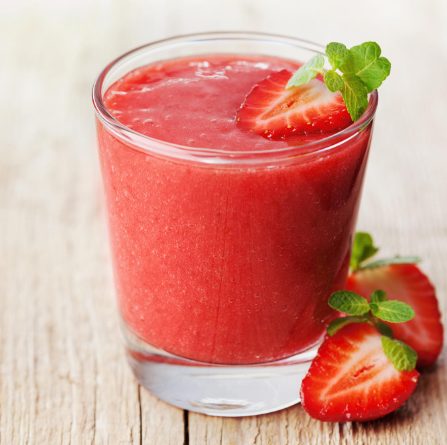 Jugo a base de pulpa mora, arándanos y fresa en yogurt o leche.