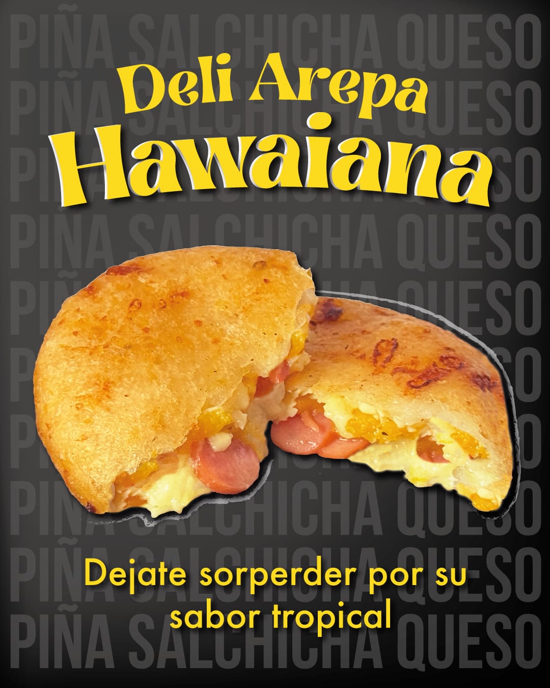Deli Arepa Hawaiana*1 + Arepa Rellena de Carne y Queso*2 + Arepa Criolla*2 + Gaseosa Quatro 2.5 L*1