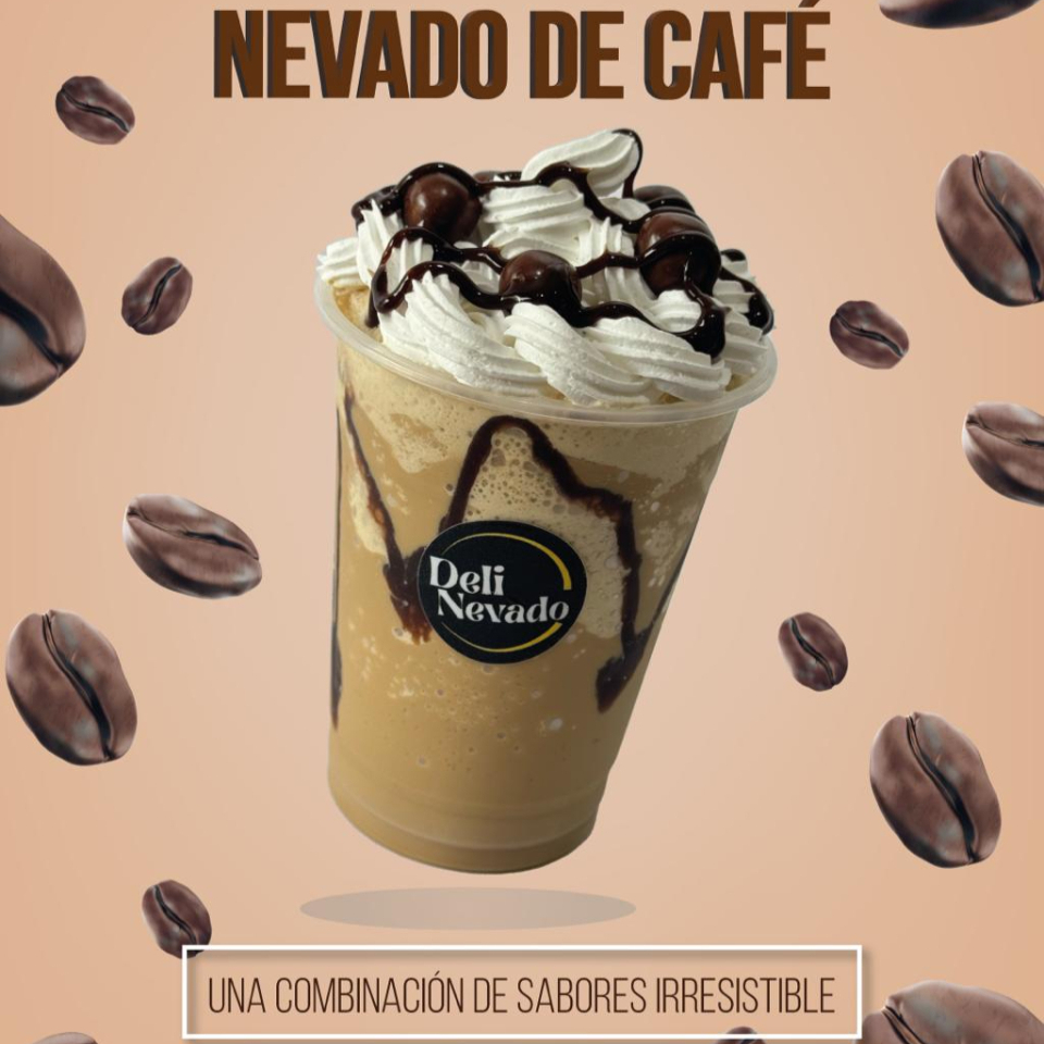 Nevado a base de café, crema chantilly, leche, salsa y topping.