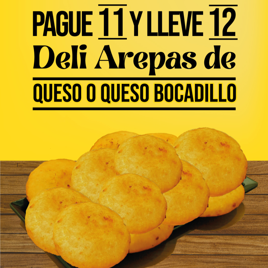 PAGUE 11 LLEVE 12 Arepas Queso o Queso y Bocadillo