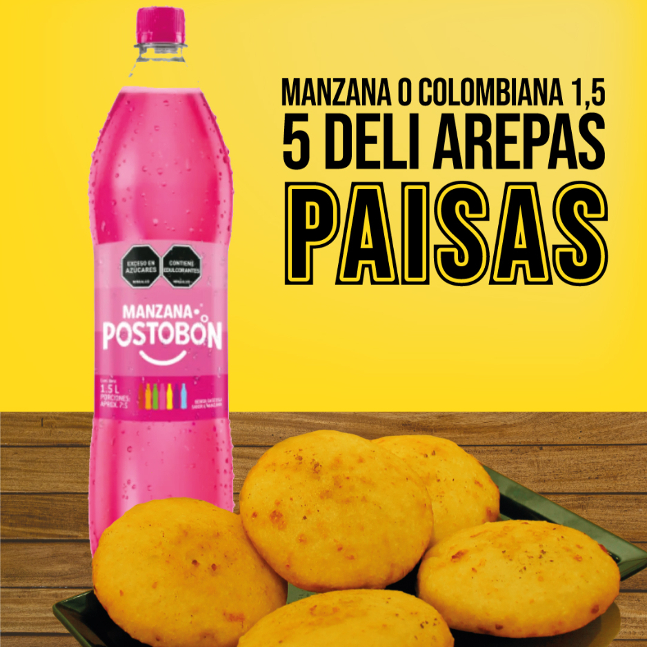Deli Arepa Paisa*5 + Gaseosa Postobon 1.5L*1