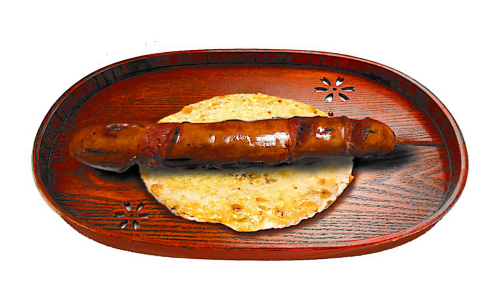 Pan, salchicha de buena calidad, queso derretido, papas chip, huevo de codorniz.