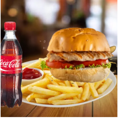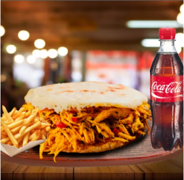Acompañada con papas a la francesa y gaseosa 400 ml.