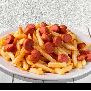 240 g De papas fritas, salchicha americana y huevo de codorniz.