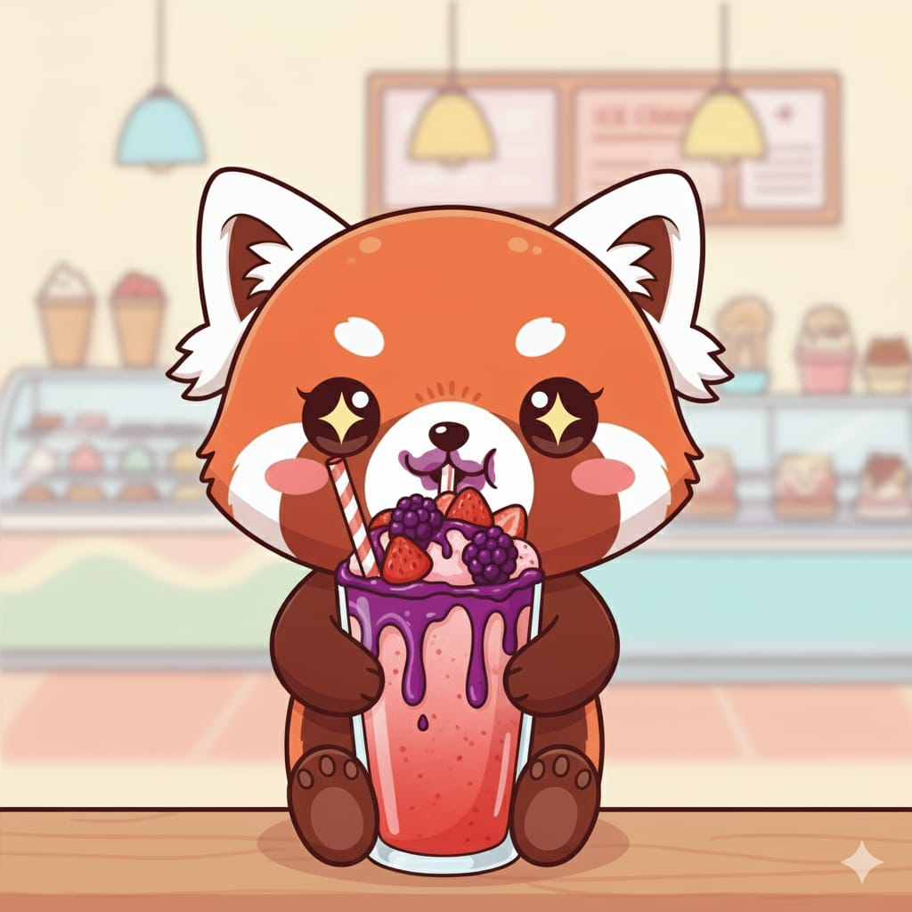 Malteada de 14 oz de helado de frutos rojos, con trozos de fresa, salsa artesanal de mora, salsa dulce de fresa y leche condensada.