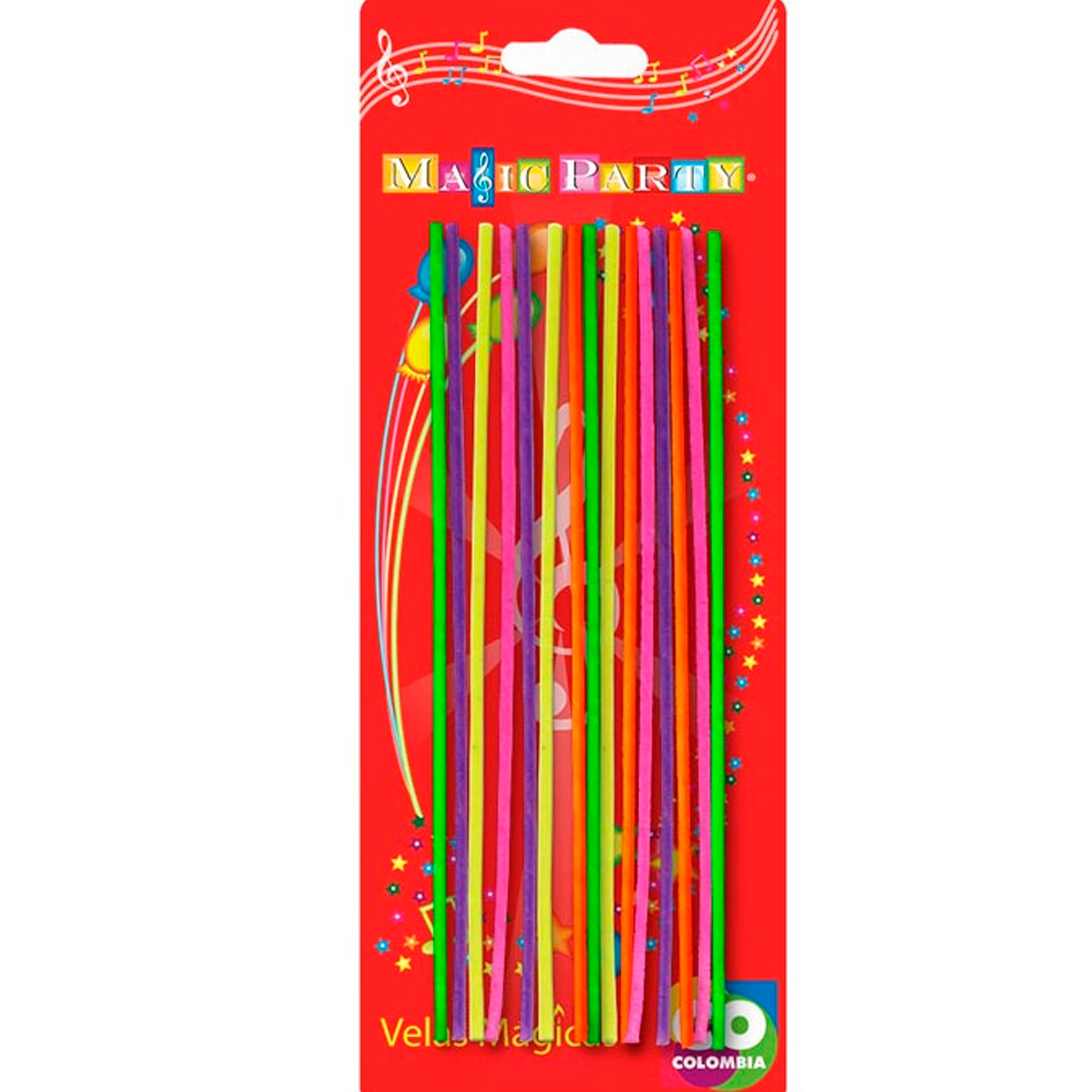 Velas rayadas de colores surtidos x 18 unidades.