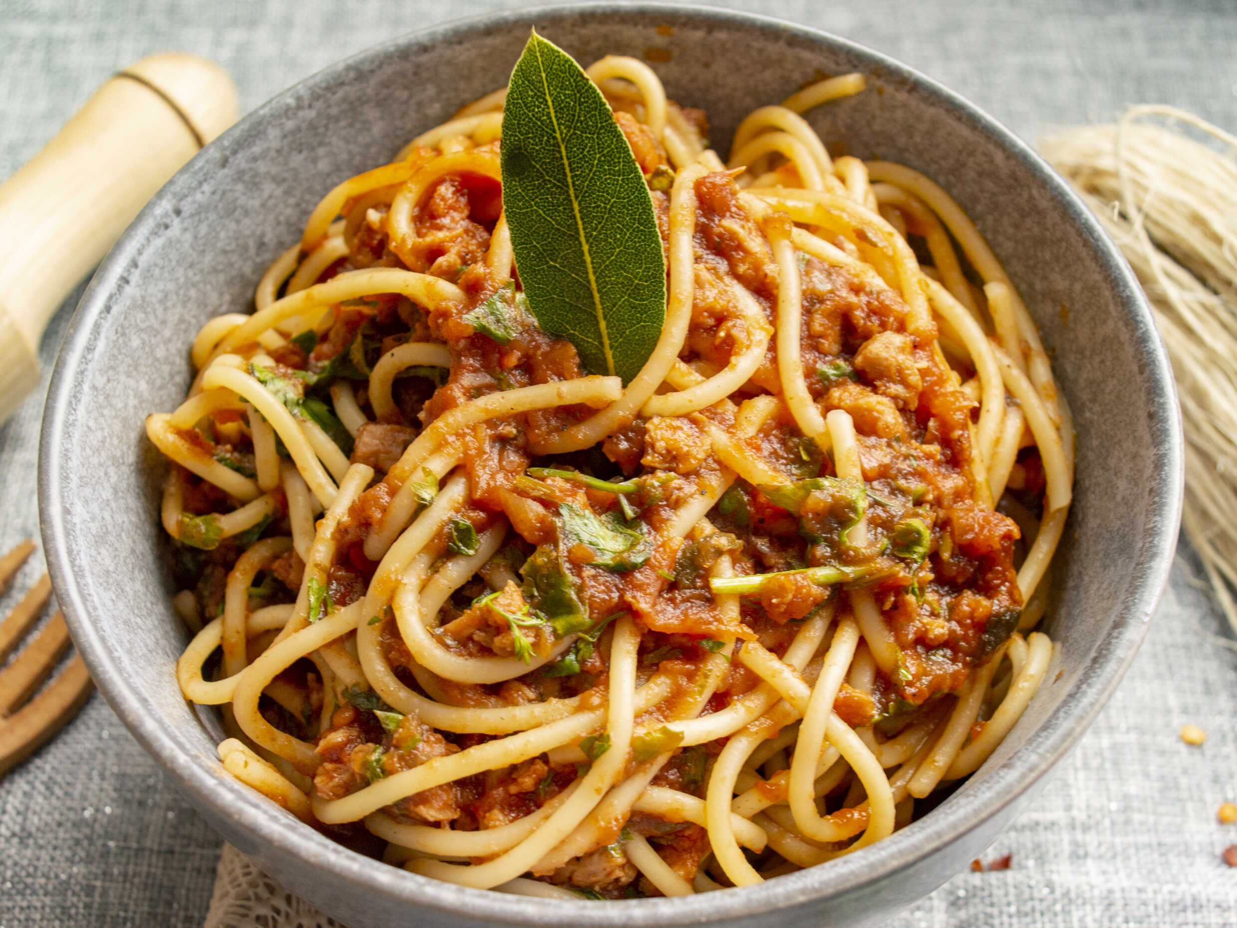 Salsa bolognesa de región de la Emilia Romagnade, carne molida seleccionada y queso parmesano importado. Recibe tu pasta acompañada de pan pita artesanal.